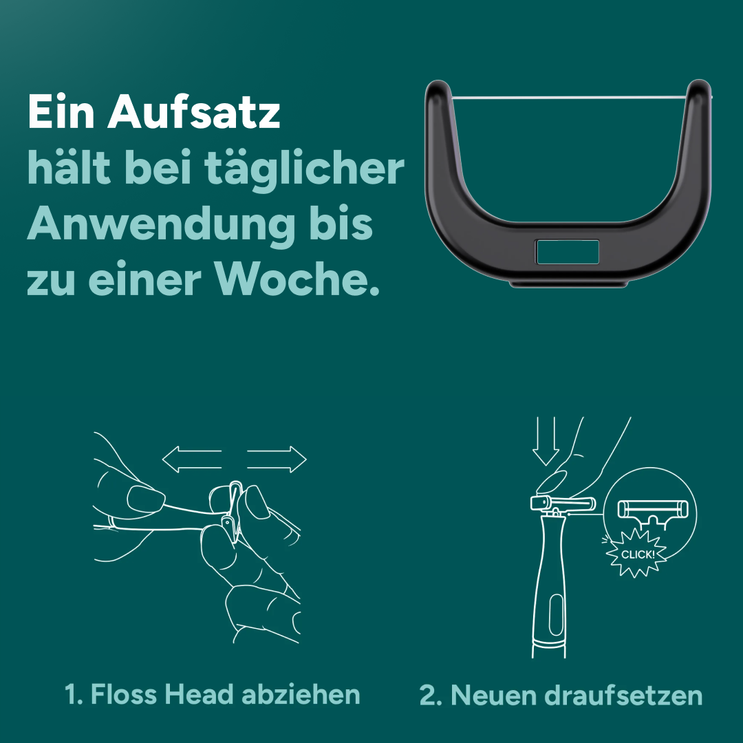 - Einfacher als klassische Zahnseide, Sticks oder Mundduschen