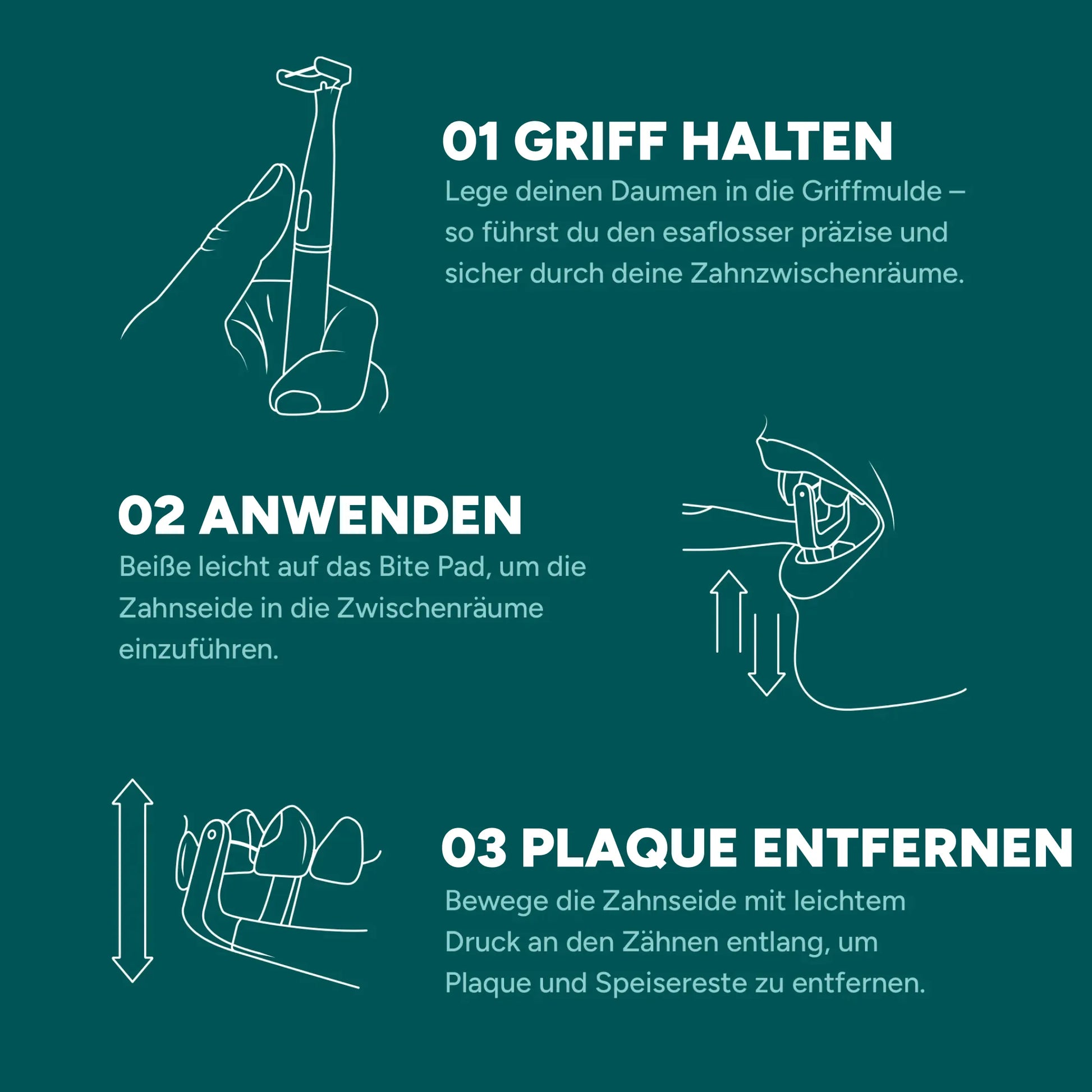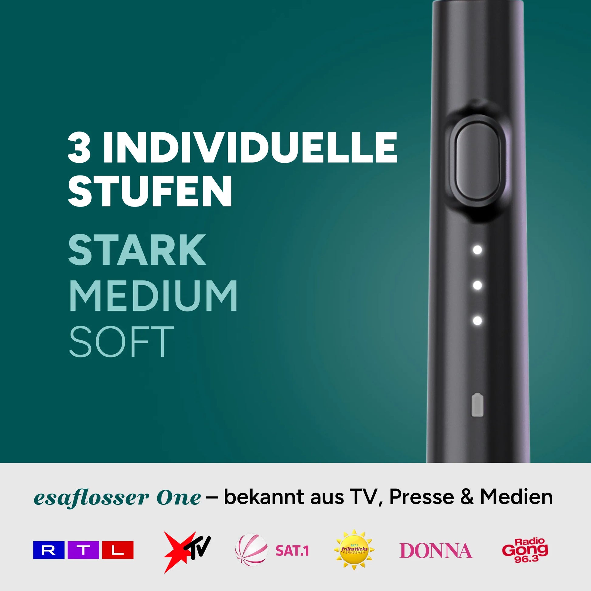 Aus dieser Idee wurde Europas erste elektrische Zahnseide: der esaflosser One. Entwickelt mit Zahnärzten – und gemacht, um dir deine tägliche Zahnpflege zu erleichtern.